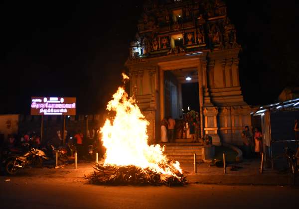 கார்த்திகை தீபத்தையொட்டி கடலூர் புதுப்பாளையம் ராஜகோபால சுவாமி கோயிலில் சொக்கப்பனை ஏற்றப்பட்டது.