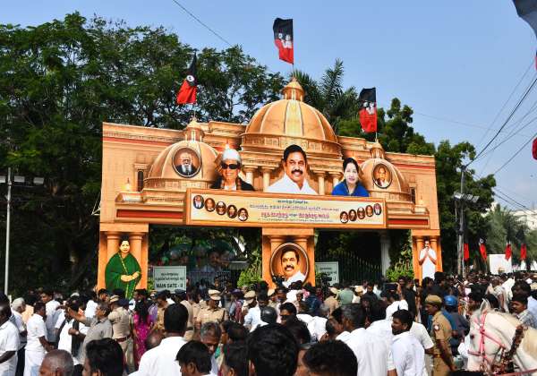 சென்னை வாகனகரத்தில் நடந்த அ.தி.மு.க பொதுக்குழு மற்றும் செயற்குழு கூட்டத்தின் பிரம்மாண்ட முகப்பு.
