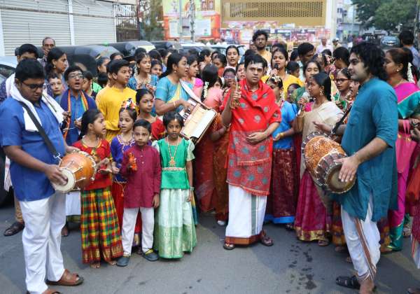 மார்கழி மாத முதல் நாளான இன்று சென்னை மயிலாப்பூர் கபாலீஸ்வரர் கோவில் மாடவீதிகளில் ஆடிப்பாடி வந்த பஜனை குழுவினர்.