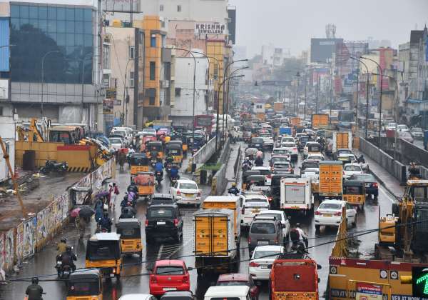 மழை காரணமாக பூந்தமல்லி நெடுஞ்சாலையில் ஏற்பட்ட போக்குவரத்து நெரிசல். இடம் : அமைந்தகரை.