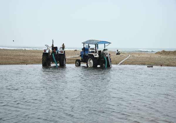 சென்னையில் சமீபத்தில் பெய்த மழையினால் மெரினா கடற்கரையில் தேங்கியுள்ள நீரை மோட்டார் பம்ப் வைத்து அகற்றும் பணி நடந்தது.