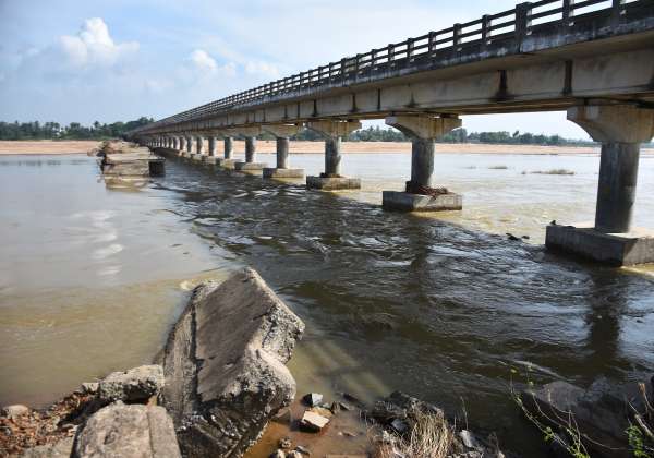 கடலூர் அடுத்த மேல்பட்டாம்பாக்கம் தென்பெண்ணை ஆற்றில் ஏற்பட்ட வெள்ளத்தால் பழைய பாலம் உடைந்து வெள்ளத்தில் அடித்து செல்லப்பட்ட காட்சி .