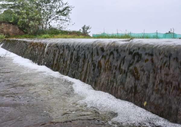 சிவகங்கை கீழ் பாத்தி கண்மாய் நிறைந்து மறுகாலில் வழிந்தது.