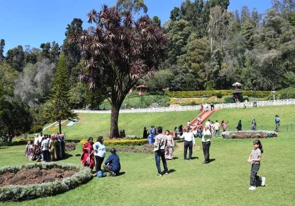 ஊட்டி தாவரவியல் பூங்காவிற்கு, ஏராளமான சுற்றுலா பயணிகள் வந்தனர்.
