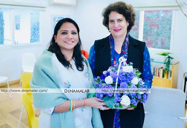 தமிழ்நாடு மகளிர் காங்கிரஸ் தலைவர் சையத்ஹசீனா, வயநாடு எம்பி., யாக பொறுப்பேற்ற பிரியங்காவை நேரில் சென்று வாழ்த்து தெரிவித்தார்.