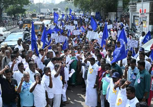 துப்புரவு பணியாளர்கள் சென்னை ராஜாஜி சாலையில் தலைமைச் செயலகம் முன்பு, மற்றும் மெரினா காமராஜர் சாலையிலும் மறியல் போராட்டத்தில் ஈடுபட்டனர். இதனால் கோட்டை ரயில் நிலையம் அருகே உள்ள முத்துசாமி பாலத்தில் நீண்ட வரிசையில் நின்ற வாகனங்கள்.