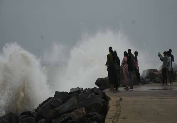 வங்கக்கடலில் நிலவும் ஆழ்ந்த காற்றழுத்த தாழ்வு மண்டலம் காரணமாக சென்னை காசிமேடு மீன்பிடி துறைமுகத்தில் கடல் அலை சீற்றத்துடன் காணப்பட்டது
