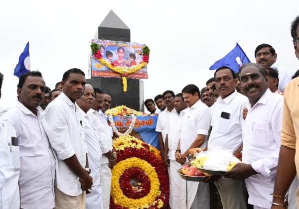 கடலூர் தேவனாம்பட்டினம் கடற்கரையில் சுனாமி தினத்தை முன்னிட்டு அ.தி.மு.க. சார்பில் முன்னாள் அமைச்சர் சம்பத் நினைவு தூணில் மலர்வலையம் வைத்து மரியாதை செலுத்தினார்.