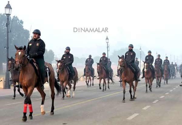 குடியரசு தினத்தை முன்னிட்டு டில்லியில் பாதுகாப்பு படையினர், அணிவகுப்பு ஒத்திகையில் ஈடுபட்டனர்.