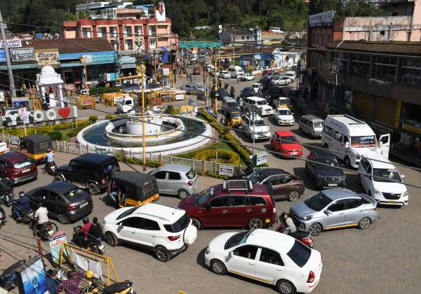 ஊட்டி சேரிங்கிராஸ் பகுதியில், அதிகமாக வந்த சுற்றுலா வாகனங்களால் , போக்குவரத்து நெரிசல் ஏற்பட்டது.
