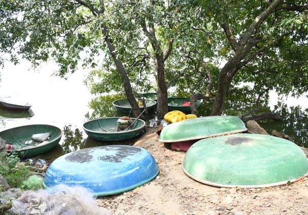 உடுமலை அமராவதி அணை மர நிழலில் ஓய்வெடுக்கும் பரிசல்கள்.