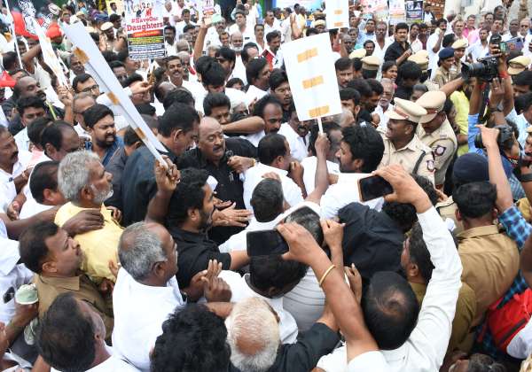 பொள்ளாச்சி திருவள்ளுவர் திடலில் அனுமதி இன்றி ஆர்ப்பாட்டத்தில் ஈடுபட்ட அ.தி.மு.க.,வினரை போலீசார் கைது செய்தனர்.