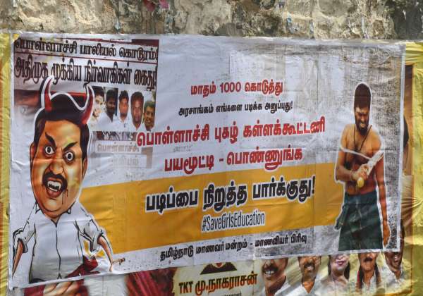 தமிழ்நாடு மாணவர் மன்றம் என்ற பெயரில், திருப்பூர் திமுக அலுவலகம் அருகில் ஒட்டப்பட்டுள்ள போஸ்டர்.