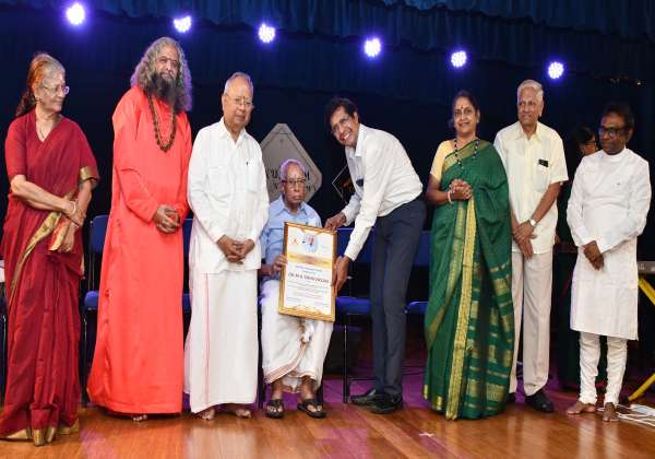 மியூசிக் டெம்பிள் மற்றும் அனுஷம் ஆர்ட்ஸ் அகாடமி சார்பில், மயிலாப்பூரில் நடந்து நிகழ்ச்சியில், மருத்துவர் எம்.கே. சீனிவாசனுக்கு, வாழ்நாள் சாதனையாளர் விருதை சென்னை ஐ.ஐ.டி இயக்குனர் காமகோடி வழங்கினார். உடன் இடமிருந்து வலம் - பா.ஜ.க கவுன்சிலர் உமா ஆனந்தன், சுவாமி வசுதேவானந்தா, தொழிலதிபர் நல்லி குப்புசாமி, சாஸ்த்ரா பல்கலை இயக்குனர் சுதா சேஷய்யன், சூப்பர்ஆட்டோ போர்ஜ் நிறுவனத்தின் தலைவர் சீதாராமன் மற்றும் திரைப்பட இசையமைப்பாளர் ரமேஷ் விநாயகம்.
