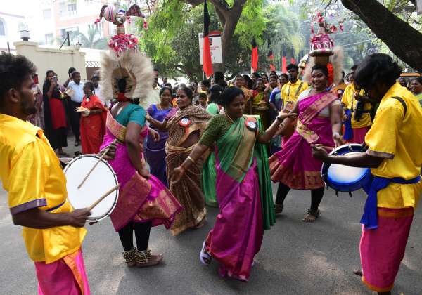 தி.மு.க., எம்.பி., கனிமொழியின் பிறந்த நாள் வாழ்த்து தெரிவிக்க வந்த மகளிர் அணியை சேர்ந்த மகளிர்கள் வந்தனர். அவர்கள் கனிமொழியின் இல்லம் முன்பு ஆடி மகிழ்ந்தனர். இடம்: சி.ஐ.டி., காலனி.