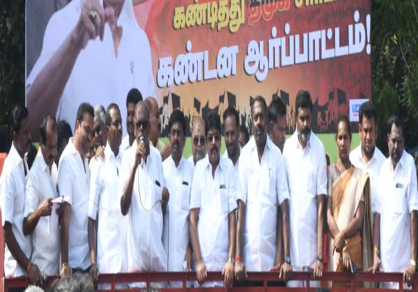 கவர்னரை கண்டித்து, திமுக சார்பில் திருப்பூர் குமரன் சிலை முன்பு ஆர்ப்பாட்டம் நடந்தது. அதில் பங்கேற்றவர்கள்.