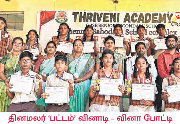 தினமலர் நாளிதழின் மாணவர் பதிப்பான பட்டம் இதழுடன் ராஜலட்சுமி இன்ஸ்டிடியூட் ஆப் டெக்னாலஜி மற்றும் கிப்ட் பார்ட்னராக சத்யா ஏஜன்சி நிறுவனம் இணைந்து வழங்கும் பட்டம் 2025-26 வினாடி வினா போட்டி திரிவேணி அகாடமி சீனியர் செகண்டரி பள்ளியில் நடந்தது.