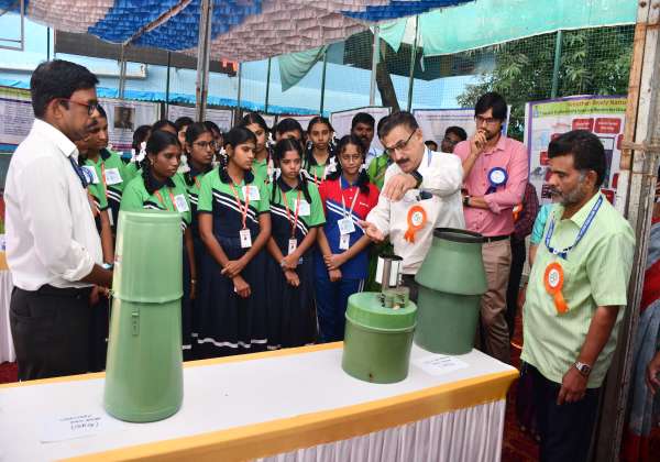 இந்திய வானிலை ஆய்வு மையத்தின் 150வது ஆண்டு விழா சென்னை, கொளத்தூர் எவர்வின் பள்ளி வளாகத்தில் நடந்தது. அதில் வைக்கப்பட்ட கண்காட்சியில், மழையை அளவீடு செய்யும் கருவி பற்றி சென்னை வானிலை ஆய்வு மைய இயக்குனர் பாலசந்திரன் மாணவியருக்கு விளக்கினார்.