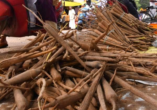 சீசன் துவங்கியதால் சிவகங்கையில் விற்பனைக்கு குவிந்துள்ள பனங்கிழங்குகள்.