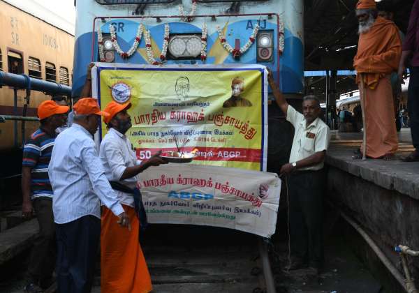 மகா கும்பமேளா முன்னிட்டு, சென்னை சென்ட்ரலில் இருந்து முதல் சிறப்பு ரயில் நேற்று புறப்பட்டு சென்றது. ஏ.பி.ஜி.பி., எனப்படும் அகில பாரதிய க்ராஹக் பஞ்சாயத்து சார்பில், சிறப்பு ரயிலுக்கு மலர் அலங்காரம் செய்து, ஓட்டுனருக்கு பொண்ணாடை அணித்தும், பயணியருக்கு இனிப்பு வழங்கி வழி அனுப்பி வைத்தனர்.