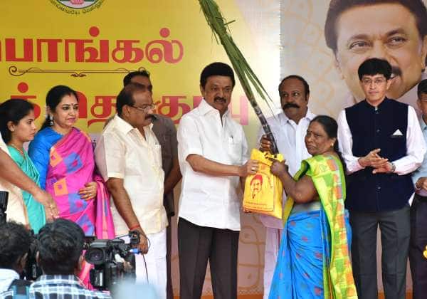 பொங்கல் பரிசுபொதுமக்களுக்கு பொங்கல் பரிசுத் தொகுப்பு வழங்கி திட்டத்தை துவக்கி வைத்த முதல்வர் ஸ்டாலின். உடன் இடமிருந்து சென்னை மேயர் பிரியா, திமுக எம்.பி தமிழச்சி தங்கபாண்டியன், உணவு மற்றும் உணவுப் பொருள் வழங்கல் துறை அமைச்சர் சக்கரபாணி, கூட்டுறவுத்துறை அமைச்சர் பெரிய கருப்பன், கூட்டுறவுத்துறை தலைமைச் செயலர் ராதாகிருஷ்ணன்.இடம் : சின்னமலை, சைதாப்பேட்டை.