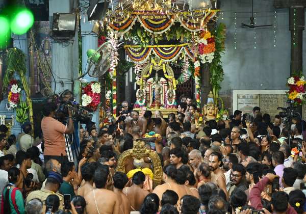 வைகுண்ட ஏகாதசியை முன்னிட்டு சென்னை திருவல்லிக்கேணி பார்த்தசாரதி பெருமாள் கோவிலில் ஸ்ரீ தேவி, பூ தேவி நாச்சியார்களுடன் பக்தர்களுக்கு பார்த்தசாரதி பெருமாள் அருள்பாலித்தார்.