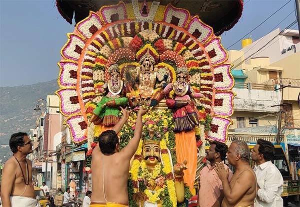ஏகாதசி முன்னிட்டு, திருவண்ணாமலை மாட வீதியில் உள்ள பூத நாராயண பெருமாள் கோவில், வைகுண்ட ஏகாதசி முன்னிட்டு, ஸ்ரீதேவி, பூதேவியுடன் சமேத பூத நாராயண பெருமாள் கருட வாகனத்தில் எழுந்தருளி மாட வீதி உலா வந்து பக்தர்களுக்கு அருள்பாலித்தனர்.