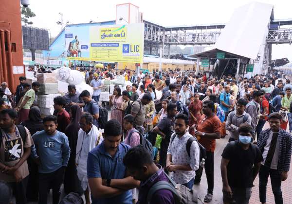 பொங்கல் தொடர் விடுமுறை காரணமாக சொந்த ஊருக்கு செல்ல கூர்ந்த பயணிகள் கூட்டம். இடம்.எழும்பூர் ரயில் நிலையம்