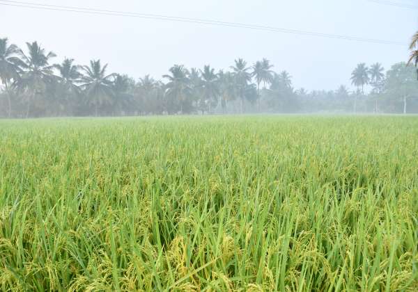 அவிநாசி, அடுத்த கருவலூர் அருகே தொட்டக்களாம் புதூரில் தூய மல்லி நெல் பயிரிடப்பட்டு அறுவடைக்கு தயராக உள்ளது.