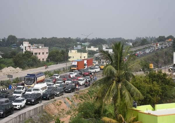 பொங்கல் பண்டிகை முன்னிட்டு தொடர் விடுமுறை வருவதை யொட்டி விழுப்புரம் புறவழிச் சாலையில் கடும் வாகன போக்குவரத்து நெரிசல் ஏற்பட்டது.