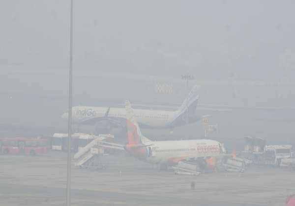 சென்னை விமான நிலையத்தில் அதிக பனிமூட்டம் காணப்பட்டது.