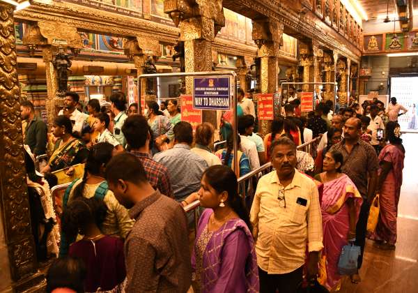 புதுச்சேரியில் காணும் பொங்கல் விழாவை முன்னிட்டு மணக்குள விநாயகர் கோவிலில் தரிசனம் செய்ய குவிந்த பக்தர்கள்.