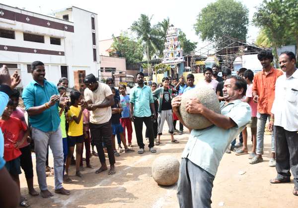 கடலூர் வெளிசெம்மண்டலத்தில் காணும் பொங்கலை முன்னிட்டு இளவட்ட கல் தூக்கும் விளையாட்டு போட்டி நடந்தது.