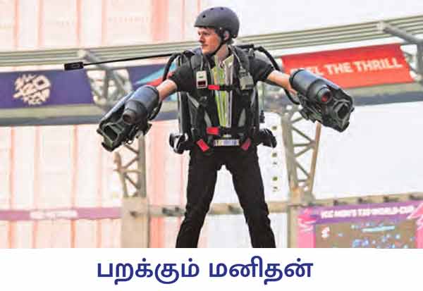மஹாராஷ்டிரா மாநிலம் மும்பை வான்கடே மைதானத்தில் நடந்த டி 20 உலக கோப்பை கிரிக்கெட் போட்டி துவக்க விழாவில் ஜெட் சூட் வீரர் வான் வழியாக பறந்து கோப்பையை அறிமுகப்படுத்தினார். தொழில்நுட்பமும் விளையாட்டு உணர்வும் இணைந்த இந்த நிகழ்வு ரசிகர்களை வியப்பில் ஆழ்த்தியது.
