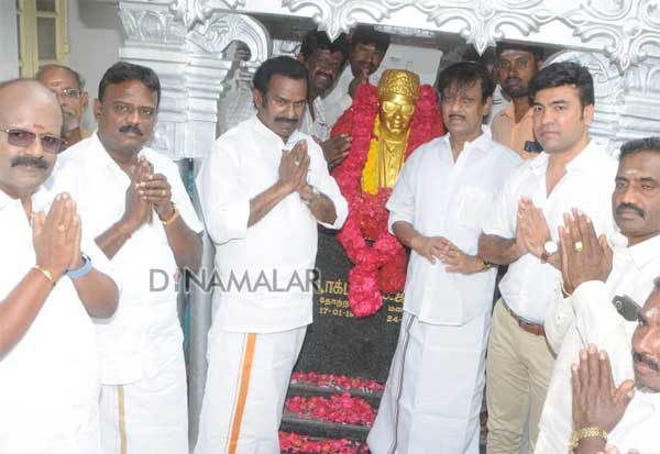 மறைந்த முன்னாள் முதல்வர் எம்ஜிஆரின் பிறந்தநாளில் சென்னை தி.நகர் நினைவு இல்லத்தில் எம்ஜிஆர் சிலைக்கு, பெருந்தலைவர் காமராஜர் மக்கள் கட்சியின் தலைவர் என்.ஆர்.தனபாலன், முன்னாள் பாடநூல் வாரிய தலைவர் லியாகத் அலிகான், உள்ளிட்ட பலர் மாலை அணிவித்து மரியாதை செலுத்தினர்.