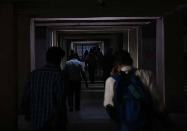 பயணிகள் அதிகமாக வந்து செல்லும் மின்சார ரயில் நிலையத்தில் டிக்கெட் கவுன்டர் செல்லும் வழி மின் விளக்குகள் இல்லாமல் கும்மிருட்டாக உள்ளது. இடம் : திருவான்மியூர்.