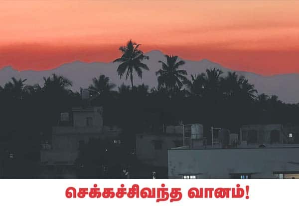 அந்தி சாயும் வேளையில், ஆதவன் ஒளிக்கதிர்களை சுருக்கி மறையும் போது, வானம் செந்நிறமாக மாறி காட்சியளித்தது. இடம்: பொள்ளாச்சி.