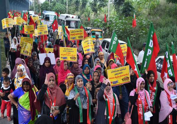 வக்பு மசோதாவை ரத்து செய்யக்கோரி, உரிமை மீட்பு பேரணி மேற்கொண்ட எஸ்.டி.பி.ஐ., கட்சியினர். இடம்: கோவை கரும்பு கடை.