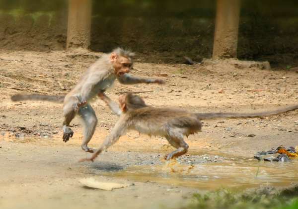 நாட்டிலும் சண்டை நடு காட்டிலும் சண்டை... கோவை சிறுவாணி ரோட்டில் உணவுக்காக சண்டை போட்ட குரங்குகள்.