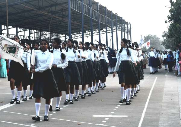 புதுச்சேரி கடற்கரை சாலையில் குடியரசு தினத்தை ஒட்டி நடைபெற உள்ள விழாவில் கொடி அணி வகுப்பில் பங்கு கொள்ள உள்ள பள்ளி மாணவ மாணவிகள் ஒத்திகையில் ஈடுபட்டனர்.