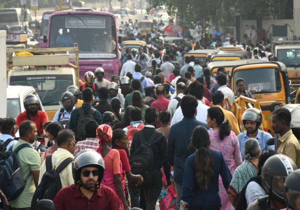 பொங்கல் தொடர் விடுமுறை முடிந்து வழக்கம்போல் பள்ளி, கல்லூரி, அலுவலகங்களுக்கு சென்ற மக்கள் கூட்டம். இடம் பூந்தமல்லி நெடுஞ்சாலை ராஜீவ் காந்தி அரசு மருத்துவமனை அருகே.
