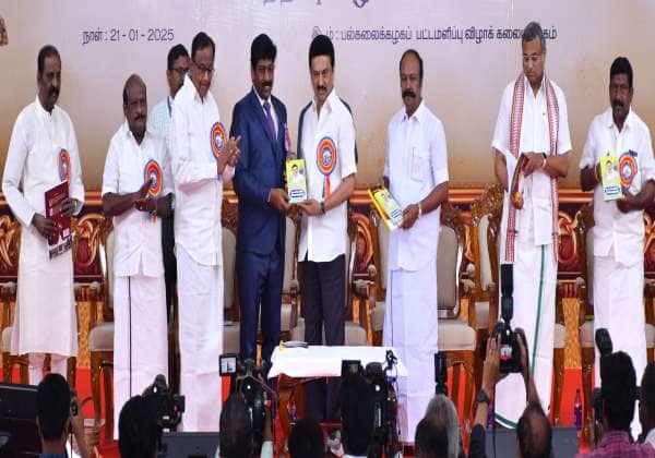 காரைக்குடியில் நடைபெற்ற வளர்தமிழ் நூலகம் மற்றும் திருவள்ளுவர் சிலை திறப்பு விழாவில் அழகப்பா பல்கலைக்கழகத் துணைவேந்தர் ரவி அவர்கள் பிள்ளைத்தமிழ் என்னும் நூலை வெளியிட்ட முதல்வர் ஸ்டாலின் பெற்றுக்கொண்டார். இடமிருந்து கவிஞர் வைரமுத்து, உயர்கல்வி அமைச்சர் செழியன், முன்னாள் மத்திய நிதியமைச்சர் சிதம்பரம், அமைச்சர் பெரிய கருப்பன். எம்.பி. கார்த்தி,எம்.எல்.ஏ. மாங்குடி.