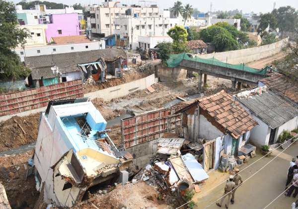 கோவை சிவானந்தா காலனி அருகே உள்ள அண்ணா நகரில் சங்கனூர் ஓடை அருகே இருந்த வீடு இடிந்து ஒடையில் விழுந்தது.