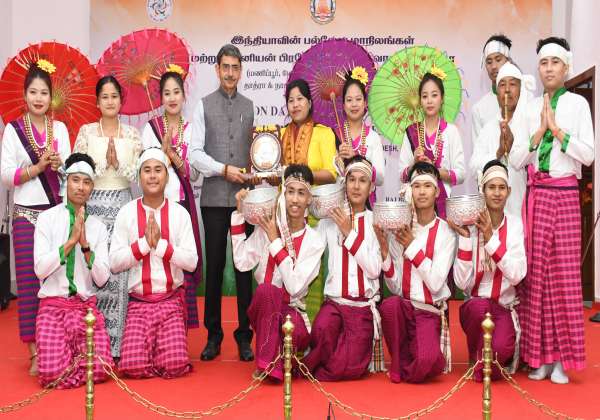 இந்தியாவின் பல்வேறு மாநிலங்கள் மற்றும் யூனியன் பிரதேசங்கள் உருவான தின விழா சென்னை கவர்னர் மாளிகையில் நடைபெற்றது. நிகழ்ச்சியில் திரிபுரா மாநிலத்தில் இருந்து வந்து கலை நிகழ்ச்சி நடத்திய கலைஞர்களுக்கு கவர்னர் ரவி பாராட்டி பரிசை வழங்கினார்.