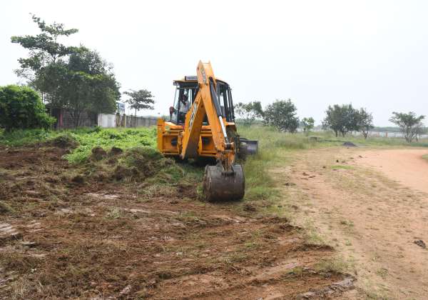 திருவள்ளூர் மாவட்ட விளையாட்டு அரங்கில் 26 ஆம் தேதி குடியரசு தின விழாவிற்கு ஜேசிபி இயந்திரம் மூலம் தயாராகும் விளையாட்டு அரங்கம்