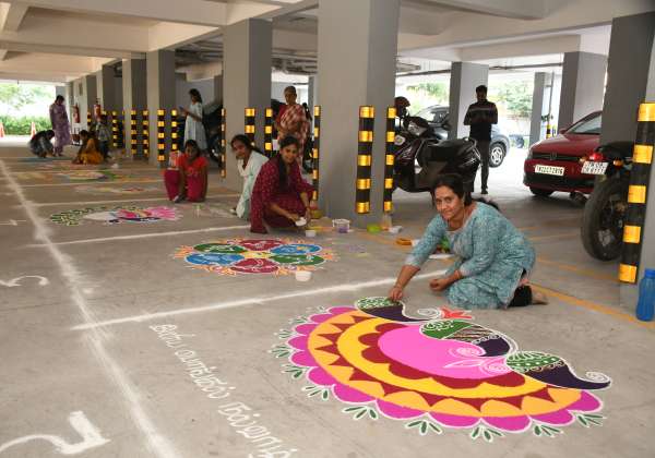 தினமலர் கார்னிவல் அப்பார்ட்மெண்ட் கொண்டாட்டம் மாங்காடு சாலை பரணிபுத்தூர் டி.வி.எஸ். எமரால்டு கிரீன் என் கிளவ் அபார்ட்மெண்டில் நடந்த விழாவில் கோலம் போடும் போட்டியில் கலந்து கொண்ட பெண்கள்.