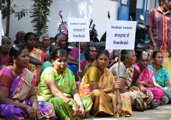 பொள்ளாச்சி நகராட்சியுடன் புளியம்பட்டியை இணைக்க எதிர்ப்பு தெரிவித்து, சப்-கலெக்டர் அலுவலகத்தில் மனு கொடுக்க வந்தனர்.