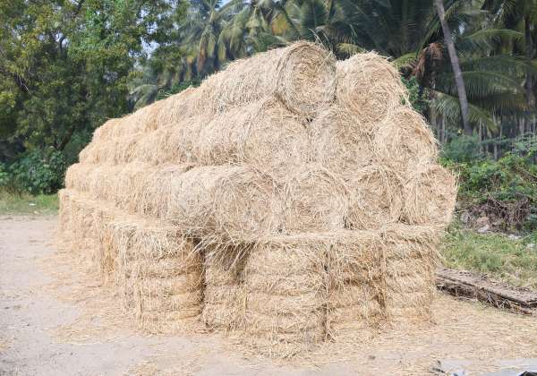 உடுமலை தினைகுளத்தில் விற்பனைக்காக வைக்கப்பட்டுள்ள வைக்கோல் கட்டுகள்.