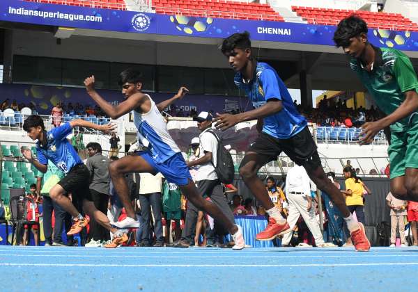 சென்னை பள்ளி மாணவர்களுக்கிடையிலான 2024-25ம் ஆண்டிற்கான விளையாட்டுப் போட்டிகளை ஜவஹர்லால் நேரு விளையாட்டு மைதானத்தில் கடந்த தடகள போட்டியில் பங்கேற்ற மாணவர்கள்.
