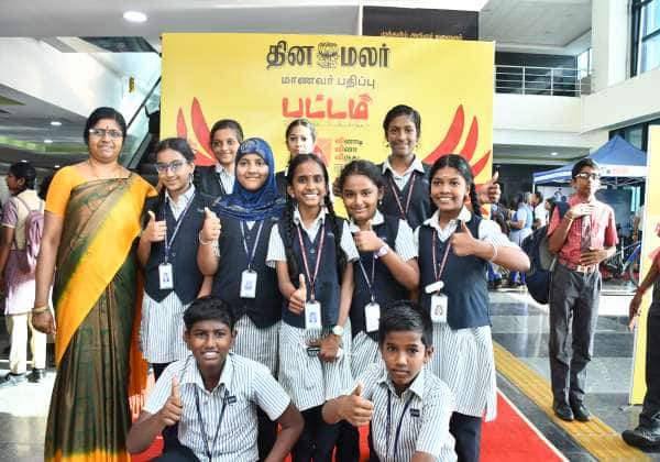 தினமலர் பட்டம் வினாடி வினா இறுதி போட்டியில் மகிழ்ச்சியுடன் பங்கேற்ற மாணவர்கள். இடம் : சேப்பாக்கம், சென்னை